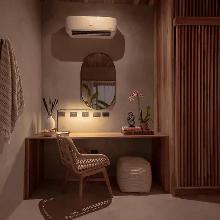 Surf Synergy All-Inclusive Surf And Wellness Retreat villa heeft een badkamer, voorzien van een douche. Een haardroger en toiletartikelen zijn inbegrepen om uw comfort te verhogen.
